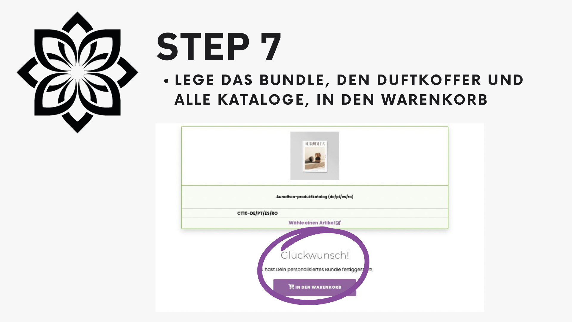Lege das Bundle in den Warenkorb. Solltest du einen Fehlercode erhalten, überprüfe bitte deine Artikel. Hast du alle Felder durchgeklickt und die Kataloge ausgewählt?