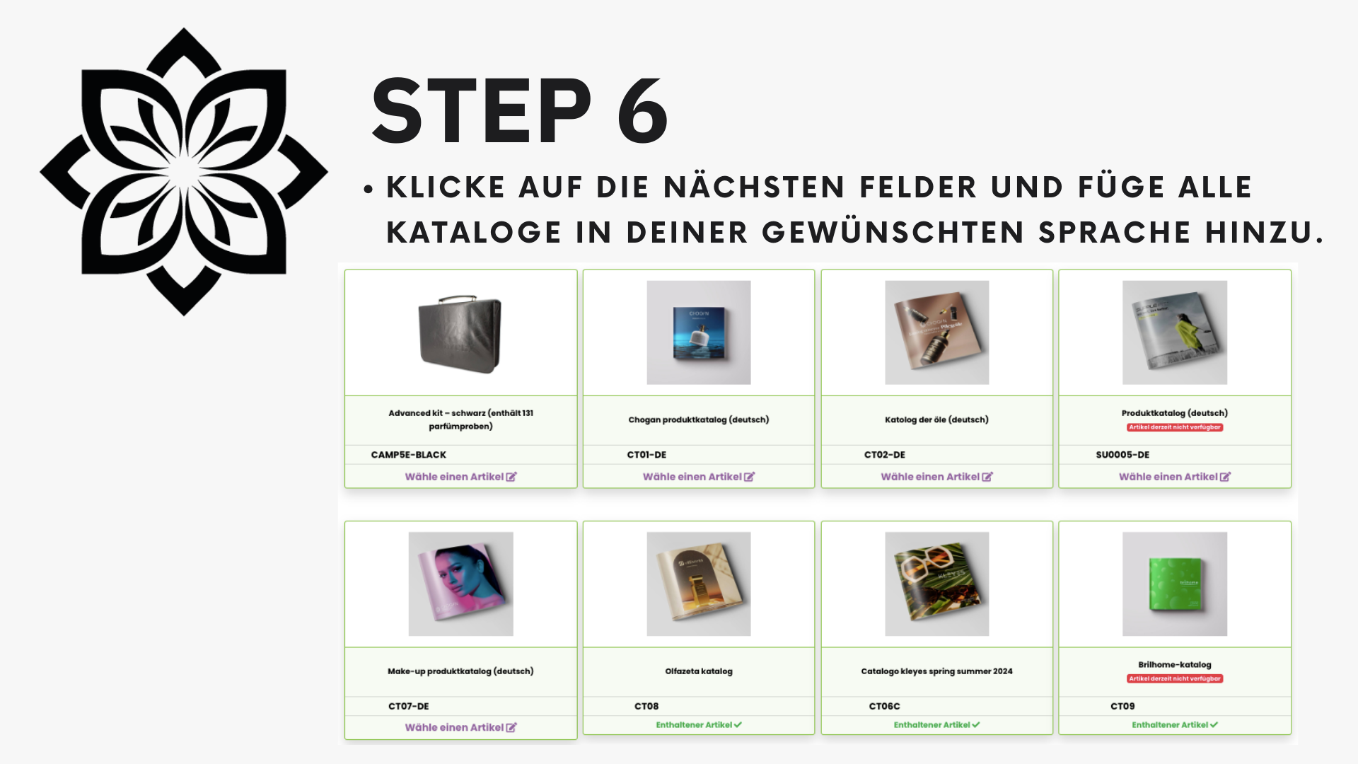 ACHTUNG!!! Bitte klicke in jedes einzelne Kästchen und wähle für jeden Katalog die gewünschte Sprache.